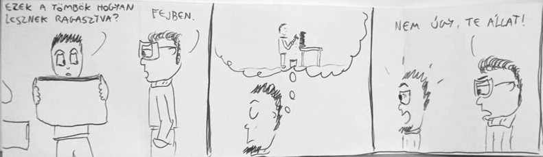 Esküszöm, a rajzolt képregényeim, képsoraim erőszakos összeboronálásai ragyogó film vagy éppen könyvcímet adnak ki. De ezt inkább hagyjuk is, elég ha "művészetemet" csak ilyen formában szabadítom a világra.