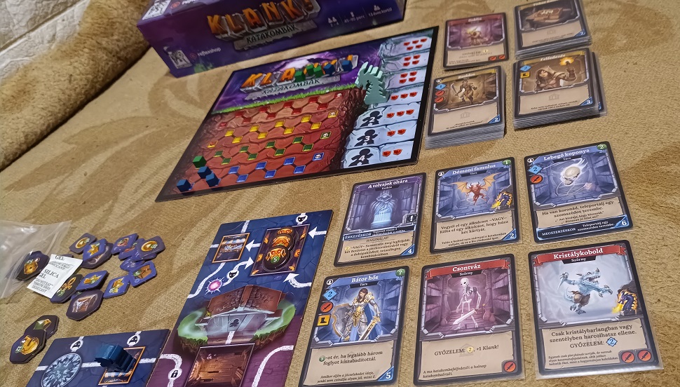 Kevés hibát tudnék felhozni, ami tényleg zavar a játékban, sőt, ami eszembe jut, az is inkább csak a műfaj sajátossága. Előfordulhat, hogy körökön át nem érkezik semmi jó lap a kazamatasorba és ami jön, az is csak szívat minket. A lapkák közül is felcsaphatunk olyat, amit forgathatunk akárhogy, nem az igazi. Ezek viszont sosem zavartak annyira. Viszont azt meg kell, hogy jegyezzem, ennyi pénzért (mert bizony megcsappantja a büdzsét a játék) igazán lehetne valamiféle inzert a dobozban, amibe normálisan el lehetne pakolni. Ennek hiányában marad a zacskózás, vagy akinek akad egy olyan jó barátja, mint nekem Papa személyében, az kérjen zsákokat, amibe elrakhatja a különböző tokeneket, ezzel is csökkentve a ki- és elpakolás idejét. Arra is érdemes felkészülni, hogy a játék megköveteli a nagy asztalt: eleve sok mindent kell ki pakolni, kártyákat, tokeneket, táblákat, de aztán ahogy bővül a katakomba, az is egyre hatalmasabb, terjengősebb lesz.
